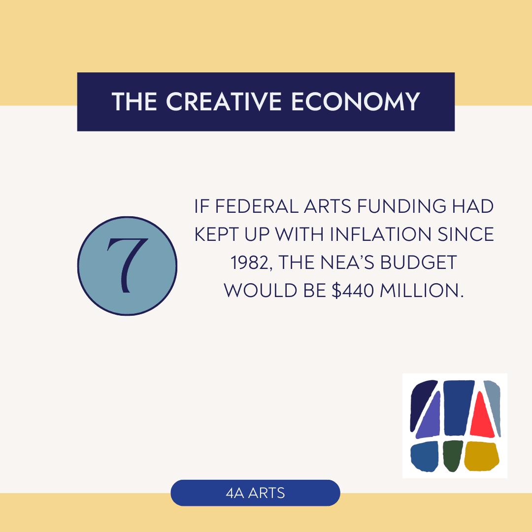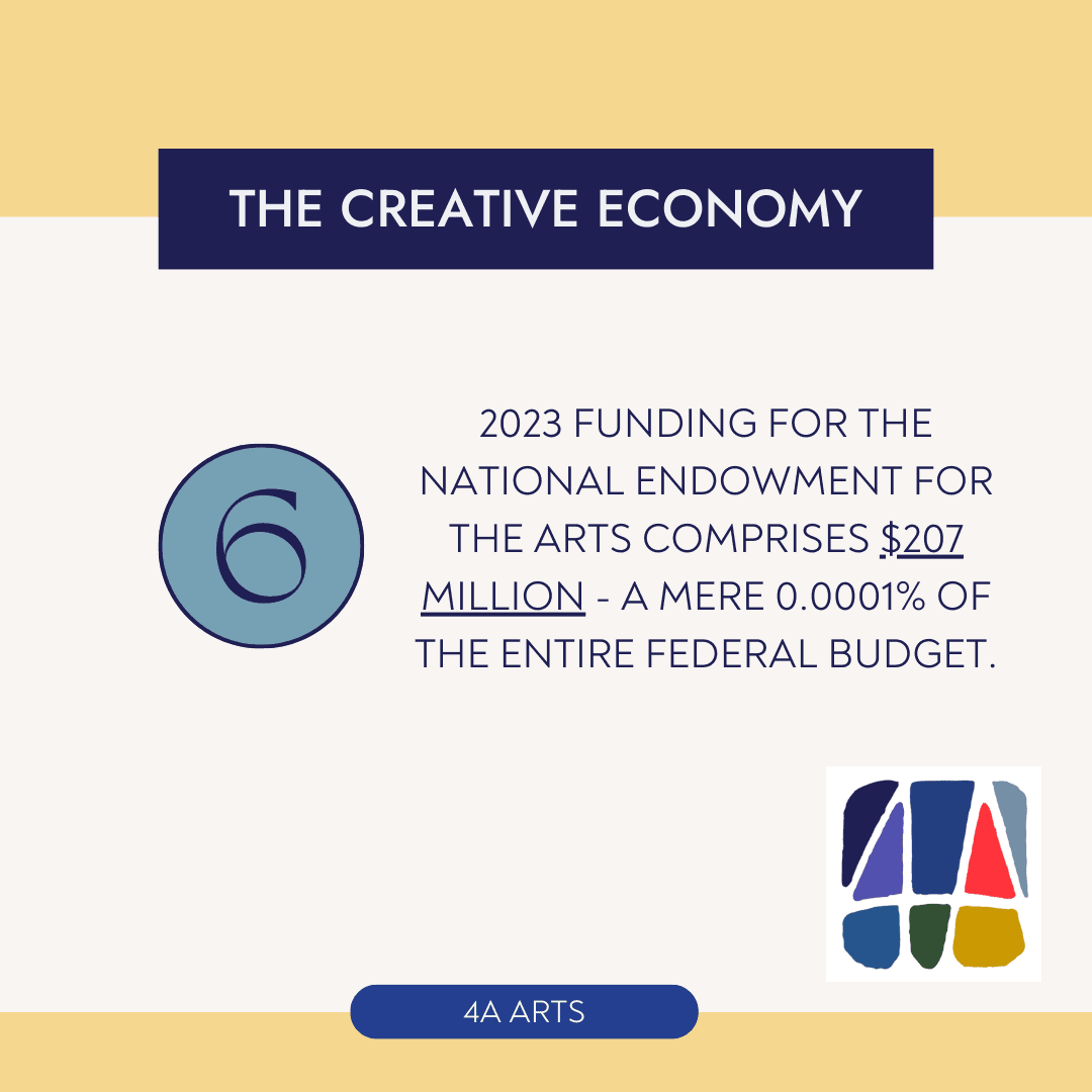 Download your own Creative Economy 101 – Pack-O-Facts, so you can delight your dinner party guests as you regale them with the vitality and importance of creative workers and work in the United States. AND, more importantly, you will be armed with information as you join our movement to democratize, catalyze, and prioritize the arts in this country.